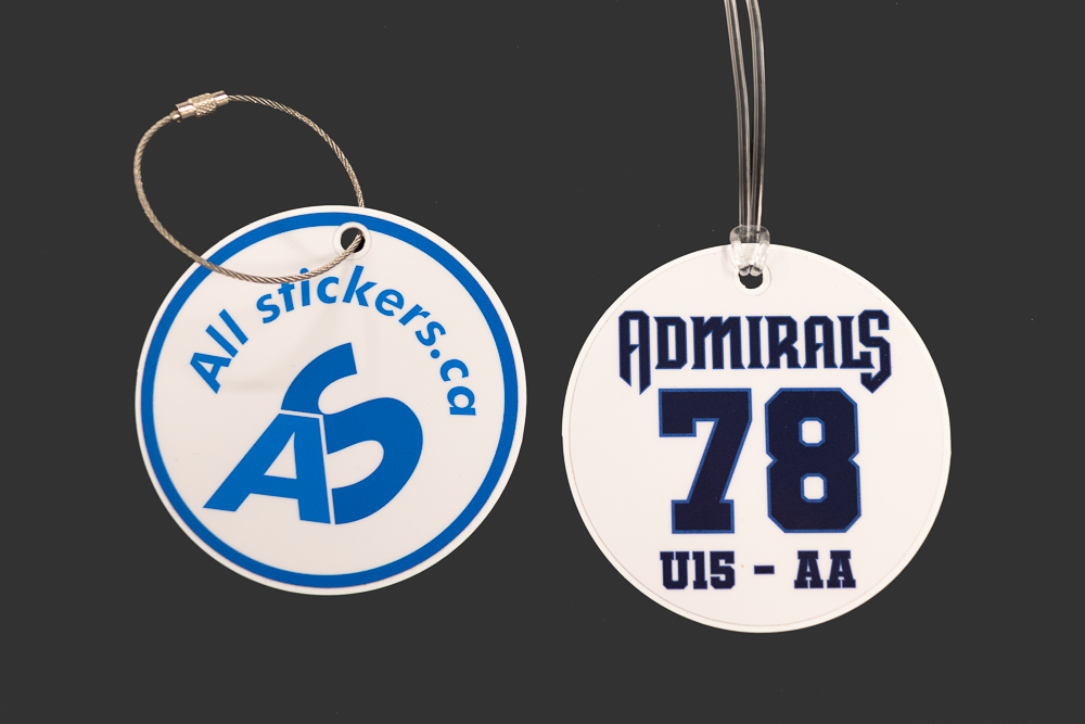 Double-sided with team logo and number on one side, and sponsor logo on back side.